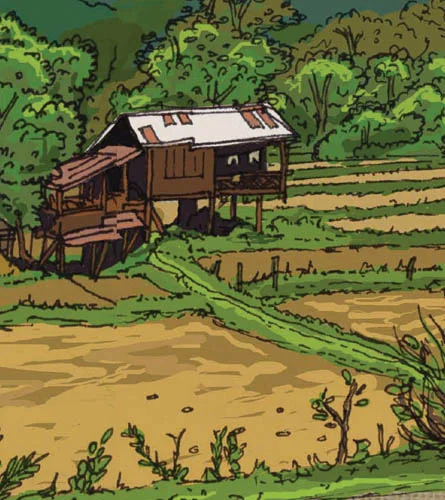 Drawing based on a panoramic photograph taken during my motorbike trip in the south of Laos. The quote is taken from the book I'd just finished reading at the time: The Count of Monte Cristo by Alexandre Dumas.